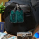 Le cuir alligator est turquoise et noir, brillant, texturé. Ce sera une fausse finition mais aura ce look peau écailleux. Je suis personnalisable !