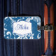 Cette étiquette de bagage est affichée dans un joli imprimé tropical bleu. Personnalisez cet objet avec votre nom si vous le souhaitez avec ce modèle. Customisez cet objet ou achetez tel que conçu.