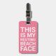 Drôle étiquette de voyage avec un arrière - plan rose qui peut être changée en n'importe quelle couleur, l'humour disant "C'EST MON VISAGE DE PLAGE REPOSANT", et vos détails personnalisés sur le dos.
