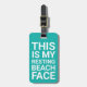 Drôle étiquette de voyage avec un arrière - plan turquoise qui peut être changée en n'importe quelle couleur, l'humoriste disant "C'EST MON VISAGE DE PLAGE REPOSANT", et vos détails personnalisés sur le dos.