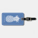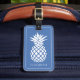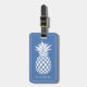 Étiquette À Bagage Ananas blanc chic sur fond bleu
