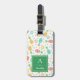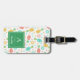 Bagage coloré avec un motif d'ananas, de tranches d'ananas et d'ananas en rose corail, turquoise et jaune contre un arrière - plan blanc. Sur le motif à ananas, il y a un étiquette vert où vous pouvez ajouter votre nom et votre initiale. Le dos est recouvert d'un motif rayé vert et blanc. Un bagage personnalisé, parfait pour des vacances tropicales et des vacances d'été.