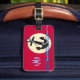 Cette étiquette de bagage comporte un graphique d'une ancre avec une corde, un soleil rayé jaune et blanc et plusieurs lignes des vagues d'eau bleue tous sur un arrière - plan rouge. Cette conception nautique simple est grande pour la personne qui voyage ou vacations près de l'eau.