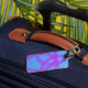 Étiquette À Bagage anneau violet superposé dans l'arrière - plan bleu