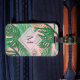 Élégante étiquette à bagages monogrammed avec aquarelle botanique verte et rose.