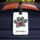 Empreinte de patte de chien et aquarelle du coeur en rouge, noir et gris. Des étiquettes de bagages personnalisées pour les hommes et les femmes. Version arrière - plan blanche. Modifier le nom pour personnaliser. Idée cadeau pour les amoureux de les chiens.