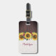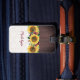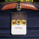 Étiquette À Bagage Aquarelle Fleurs de soleil dentelle Bois Nom rusti