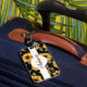 Étiquette À Bagage Aquarelle Noir Jaune Tournesol Motif sans couture