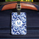 Peinture à papillon couleur bleu et blanc Indigo pour faire ressortir vos sacs de voyage de la foule. Art original de Nic Squirrell. Modifiez l'initiale du monogramme et les informations de contact au verso pour personnaliser.