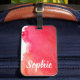 Étiquette À Bagage Aquarelle rouge rubis arty de voyage personnalisé