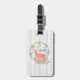 Marque de bagage personnalisée avec un design d'aquarelle numérique de style boho cool. Une silhouette de renne orange pastel à l'intérieur d'une couronne de feuilles d'herbes. Champignons et fougères forestières à ses pieds. Un motif de bouleau gris et blanc dans l'arrière - plan.