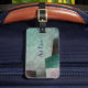 Cette étiquette à bagages est un élégant art déco inspiré abstrait. Le design est unique et sophistiqué avec une atmosphère industrielle dans les tons vert émeraude, mauve et noir dans des blocs de couleurs. Personnalisez avec votre nom et personnaliser avec vos coordonnées au dos.