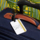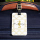 Ce design comprend un hippocampe avec un effet or motif vague océanique. L'image côtière de style Art déco fait une étiquette de bagage moderne et unique avec un texte personnalisé.