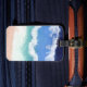 Étiquette À Bagage Art numérique de vague de l'océan turquoise et ble