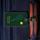 Identification sport pour joueur de tennis. Une raquette bleue avec une boule jaune, ainsi que le nom et les initiales personnalisés
