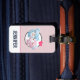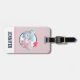 Porte-bagages personnalisée avec une jolie image de dessin animé d'un couple d'ours, l'ours est rose pastel avec un petit arc et elle embrasse la joue d'un ours bleu qui semble ravi. Un petit coeur rose flotte au-dessus de leur tête. Très mignon et kawaii. motif Arrière - plan est une couleur rose muet avec des pois blancs.