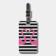 Cette étiquette à bagages tropicaux est décorée d'un flamant fuchsia embrassant un arrière - plan rayé noir et blanc sur le devant, et toutes vos informations personnelles sur le dos, ce qui le rend parfait pour vos prochaines vacances.