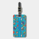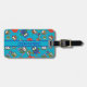 Un cool, double face acrylique Bagage Tag ou Étiquette, avec un motif de choux mignons en rouge, bleu, vert sur un arrière - plan bleu turquoise que vous pouvez facilement changer en utilisant le bouton d'édition. La courroie est en cuir et le motif de hibou est d'une conception originale de collage en papier peint à la main par Judy Adamson.