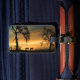 Belles couleurs du sud-ouest et chevaux avec chênes silhoués contre le lever du soleil matinal. Super joli, juste personnaliser le dos de ces belles étiquettes de bagages!