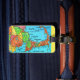 Grande carte rétro du Cap réorientée sur une étiquette de bagage personnalisable. Il est simple d'ajouter vos renseignements personnels à l'arrière. Si vous l'achetez comme cadeau, vous avez la possibilité de commander l'étiquette avec le feuillet dans la carte d'information.