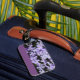 Cette étiquette lumineuse peut être customisée pour ajouter le nom, l'adresse et le numéro de téléphone, ainsi que pour attirer l'attention sur les bagages à l'arrivée. Les yeux attrapent des fleurs violettes se détachent et ajoutent une touche vivante aux bagages !