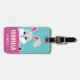 Il s'agit d'une étiquette de bagages mignon pour la fille, Grand cadeau pour l'anniversaire de l'enfant, Nom personnalisé à l'avant et plus d'informations sur le dos.