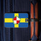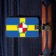 Bagage Tag avec design avec un drapeau du comté historique de Pembrokeshire, au Pays de Galles, Grande-Bretagne; drapeau bleu azur avec croix jaune et rose Tudor blanc dans le centre