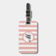 Étiquette À Bagage Balise de bagage en monogramme blanc rose rayé