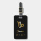 Élégante étiquette à bagages avec signe capricorne or sur arrière - plan noir.