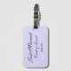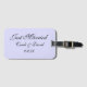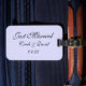 L'étiquette de bagage personnalisée est affichée dans lavande avec du texte Just Married sur l'avant et une fente de carte sur l'arrière. Customisez cette étiquette et changez les noms et la date à la vôtre.