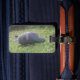Cette étiquette à bagages impressionnante comporte une photo d'un pigeon sauvage pris dans mon jardin. L'oiseau picorait dans l'herbe à la recherche de semences qui avaient été arrachées d'une mangeoire d'oiseaux. En baissant la tête pour pique, il ferma l'oeil et, par conséquent, il semble qu'il dort.
