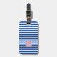 Prévoyez une étiquette de bagage avec un arrière - plan pastel dans une couleur de votre choix avec des rayures et un monogramme en trois parties sur un porte-monogramme. Le verso contient vos informations dans une police sans serif sur un arrière - plan blanc.