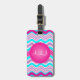 Étiquette À Bagage Balise de bagage rose, bleu, blanc à rayures ondul