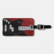 Marque de bagage de guitare noire et électrique avec modèle texte sur un côté. Design graphique rouge foncé des deux côtés. L'image partielle d'une guitare noire est sur le devant avec un texte blanc gras sur le dos. Identifiez facilement vos bagages avec une étiquette unique.