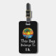 Facile à reconnaître cette étiquette de bagages monogramme tropical design personnalisé a des initiales monogrammes que vous pouvez personnaliser en ligne et est conçu avec un graphique de coucher de soleil tropical dans l'arrière - plan avec le design sur les deux côtés afin que vous reconnaissez vos bagages peu importe le côté qui est affiché.