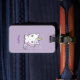 Une étiquette de bagage violet avec une mignonne licorne en couleur pastel et un prénom et un contact personnalisables pour une fille!