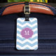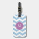 Étiquette À Bagage Balise de bagages Monogramme Chevron bleu et blanc