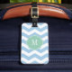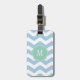 Étiquette À Bagage Balise de bagages Monogramme Chevron bleu et blanc