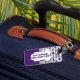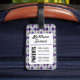 Motif de Jacquard élégant surdimensionné dans les couleurs de l'école de violet et gris argenté a établi le décor pour ce modèle de marque d'identification bébé mignon. Un vêtement de bébé blanc sur le devant indique que vous avez le meilleur bébé jamais, tandis que le dos inclut le nom de votre enfant et les coordonnées de vos parents. Le design se décline en marron et gris, orange brûlé et gris, rouge et noir, vert et noir, orange et bleu marine, vert et jaune, violet et gris. Produits correspondants disponibles.