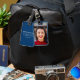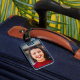 Votre étiquette de bagage de voyage photo avec une bordure bleue marine arrondie et les coordonnées personnalisées au dos. Assurez-vous que votre sac ou votre coque se distingue et peut être trouvé facilement après l'arrivée.