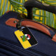 Balise de bagage avec drapeau de variante de Saxe-Anhalt; design avec deux bandes horizontales de jaune (or) et de noir, et avec armoiries de l’état au centre