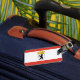 Balise de bagage avec variante du drapeau de Berlin, drapeau d'état avec bandes horizontales de rouge et blanc, avec une illustration d'un ours noir à l'intérieur d'un bouclier avec couronne