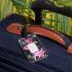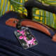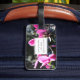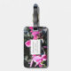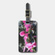 Jolie étiquette à bagages fleuris, avec des fleurs roses des deux côtés. Customisez avec votre carte d'identité personnelle que vous désirez au verso.