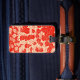 Marque à bagages personnalisable dans un imprimé kimono japonais vintage - un tout motif de feuilles stylisés, alternant espace positif et négatif, dans Mandarin orange / mandarine profonde classique et crème orange pastel
