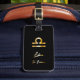 Élégante étiquette à bagages avec panneau de bibliothèque en or sur arrière - plan noir.