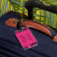 Cette étiquette personnalisée, moderne et tendance rose fuchsia, noir et blanc lustre de la salle de bal porte un motif arrière - plan de rouleaux rose et noir orné qui ferait vraiment ressortir vos bagages dans la foule. Le texte est personnalisable. Si vous avez besoin d'autres articles correspondants, veuillez envoyer votre demande par courriel à niteowlstudio@gmail.com.