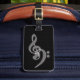 Une étiquette classique simple de musique noire/blanche à thème bagage - treble blanc et clés de basse contre un arrière - plan noir texturé. Amour Musique. Personnalisez-le avec vos détails à l'arrière =)