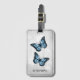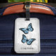 Ajoutez une touche personnalisée à vos bagages avec une étiquette de bagage personnalisée Floral Papillon Bleu. Le design des étiquettes de bagage comprend une paire de papillons vibrants reposant sur une vigne florale blanche contre un arrière - plan gris clair. Autres cadeaux disponibles avec ce design ainsi qu'une variété de couleurs.