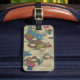 Les minuscules icônes de voyage sont sécurisées par d'élégantes étiquettes de bagages, fabriqués à partir de crème légère ou d'acrylique bleu clair. Ces étiquettes ajoutent une touche de sophistication, leur surface lisse contrastant avec la carte vibrante et les icônes ludiques. Chaque étiquette peut varier légèrement en forme, faisant écho aux continents qu'elle représente.