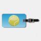 illustration de balle de tennis en dessin animé vert cool sur un arrière - plan en dégradé bleu et une zone de texte personnalisable pour vos informations.